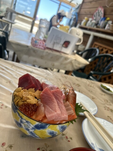 マグロ丼ももちろん美味しいけれど、マグロばかりを沢山食べるより、海鮮丼オススメよ!と教えていただいたので、海鮮丼を注文しました!