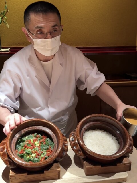 土方の〆の土鍋ご飯は2種類で、1つは『梅ジャコ枝豆ご飯』と『とろろご飯』で共に土鍋で炊き立てで一粒一粒が美味すぎておかわりもさせていただきました。
