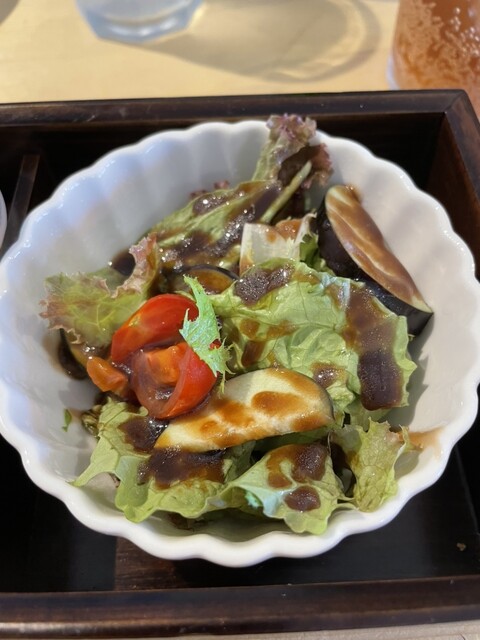 オクラとトマトのテリーヌ。モズクのペペロンチーノ(これ最高!)カボチャのムース。バターが効いていて濃厚な旨さ!バルサミコドレッシングのサラダ。甘めのドレッシングがにくい!ドリンクは辛口ジンジャエールにしました。