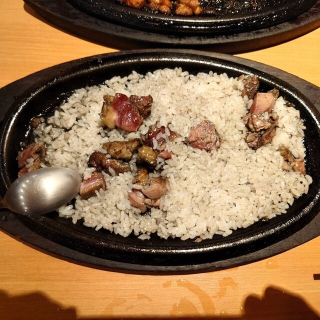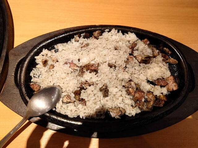 最後はもも塩焼きに少しだけ地鶏を残した鉄板にごはんを投入!