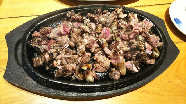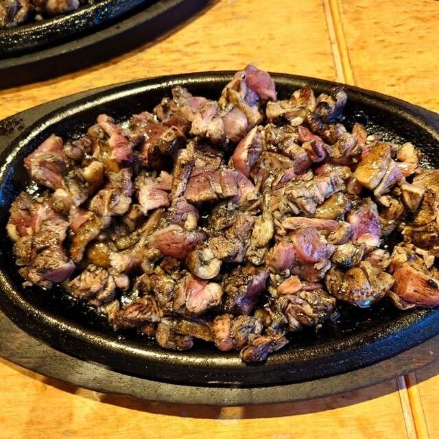 こちらは口の付近から炭の香ばしい香りが漂ってきて、そのまま口に運ぶと程度な食感の後に地鶏の脂がジュワーと溢れてきてきて最後にニンニクの風味が鼻から抜けます。