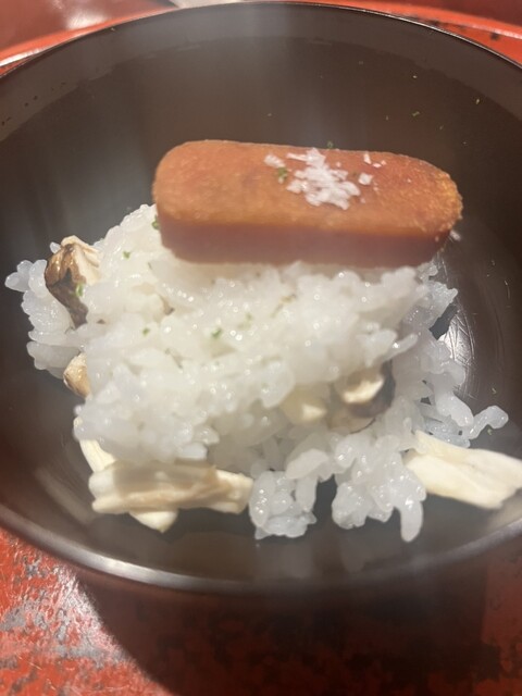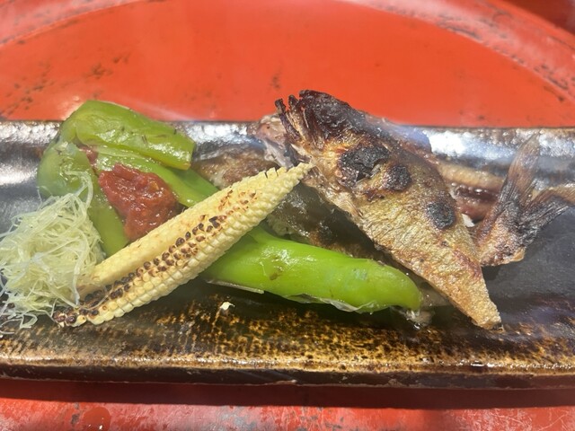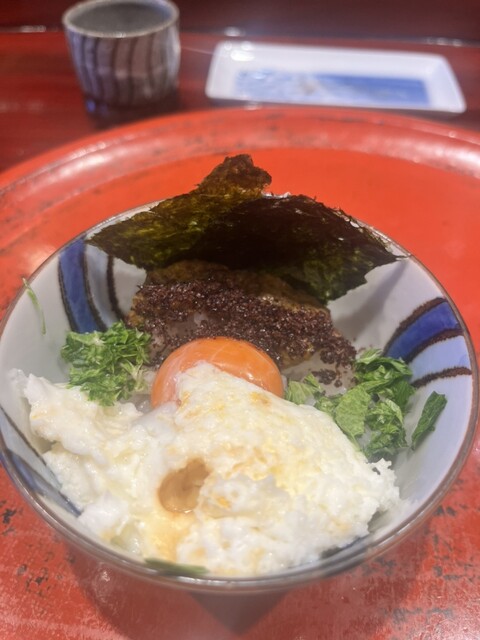 八寸には季節を思わせるあれこれがのり、ヤマメ、鮎、コイ、キノコとお野菜の炊き合わせ、カレイに牛、それから毎度お馴染みのメインデッシュ、メザシとご飯(白飯、お焦げパリパリ、ニューヨーク)さらにファーストクラスのYKTKG(山芋カラスミ卵かけご飯)と全編素晴らしいお料理でした。
