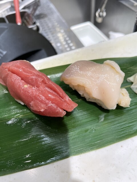 日曜12時20分、カウンター席満席で通路待ち客8人。皆さん昼間から生ビールやらハイボール片手にお寿司をつまんでいるものだから回転が悪く30分待ち。まずはメニューにある立ち食い寿司の楽しみ方に習って「歯舞セット:赤ほや、真鰯、帆立の白子」、「落石セット:槍烏賊、真鰯、青ゾイ」からスタート。ほやは磯の香りが口中に広がり口福感に浸れました。今が旬の真鰯は脂が乗って鰯独特の甘みが溢れていました。秋から冬が旬の青ゾイ(メヌケ)切り身が分厚くてプリプリとした食感で癖のない上品な味わい。追加オーダーした大トロは身が厚く切られており濃厚な脂の旨味、赤身は鮪本来の酸味が感じられさっぱりといただきました。甘海老は5本の細身で纏められておりねっとりとした甘味がして美味しかったです。ひとつ欲を言えばにぎりがいびつでないことくらいでしょうか。家内とハイボールとにぎり10貫ずついただき二人で5000円と驚きの安さで手軽に職人さんが握ったお寿司をいただきました。ご馳走さまでした。