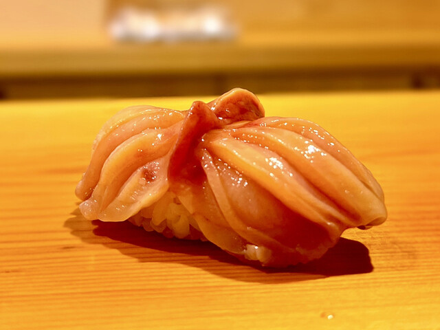 今回牡蠣の握りを人生で初めて頂いたのですが牡蠣は身の周りの膜部分を丁寧に処理されており、とにかくトロトロ‼️シャリが少し暖かいので口の中で溶けてしまうほどです。