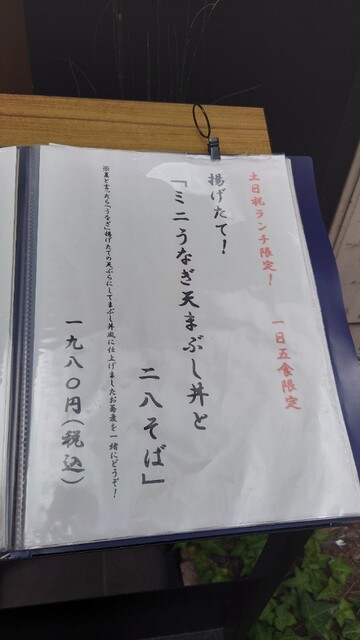 先週伺ったときに気になっていた、ミニうなぎ天まぶし丼と二八そばのセットを注文してみました。