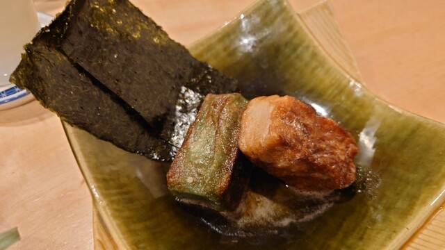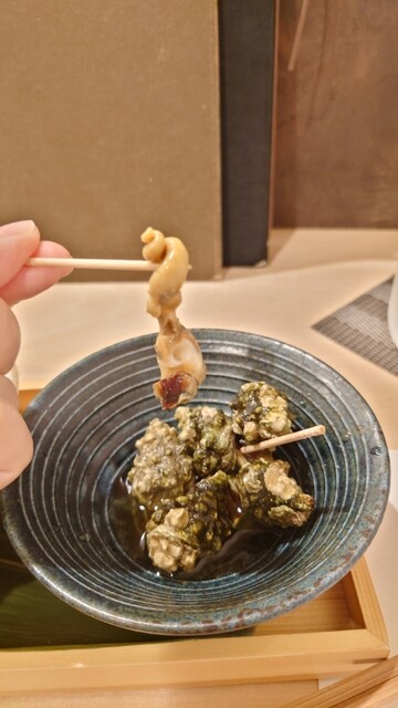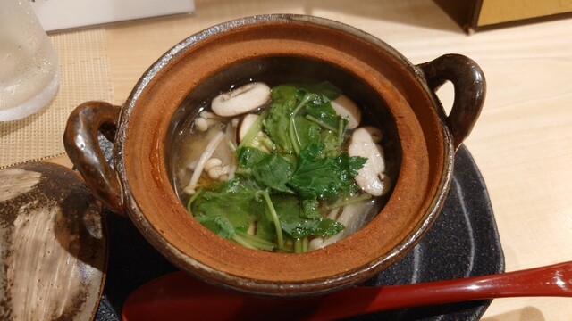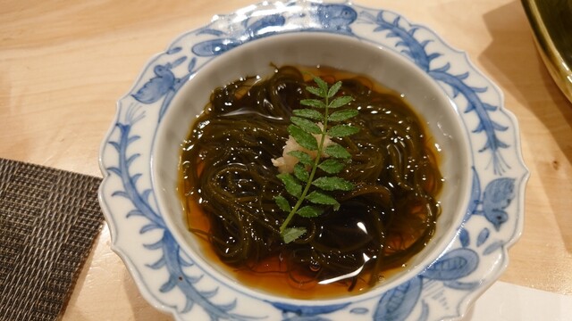 からすみそばはもう少し先の日でも食べられるそうなので、本日の目玉っぽい、生ワカメのしゃぶしゃぶをいただきました。…言うてもワカメでしょ!と、舐めておりましたが…、ハマグリの出汁が効いてて、メッチャ美味いぃぃ〜〜〜!!これ、絶対に食べた方がいいヤツ!!最初、ワカメが丼の入れ物にモリモリ盛られて出てきたとき、「マヂかぁ、お昼食べ過ぎて、そんなに余力がないよ?」とか思ってたケド、全然余裕〜♪おかわりしたかったなぁ。