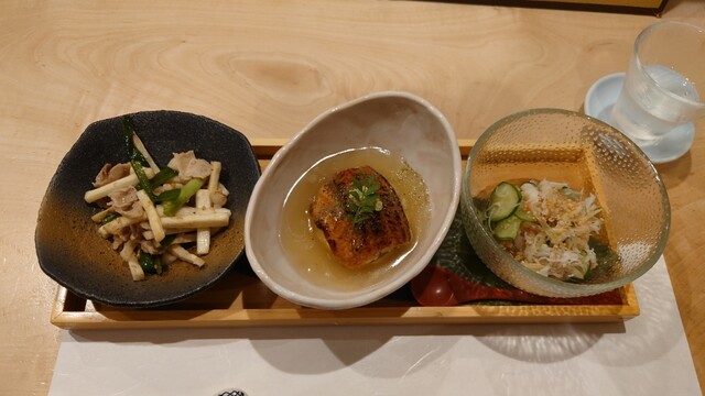 おばんざい三種盛(大根ゆずなます・海鮮松前漬け・今市かぶらの蟹あんかけ)
