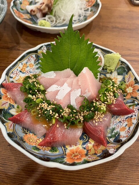 お刺身はごまぶりと水蛸をいただきましたが、どちらも鮮度が良くて驚きました。ぶりはねっとりとした脂にごまダレとネギがよく絡み、タコは歯ごたえが心地よく爽やかな旨みが広がります。