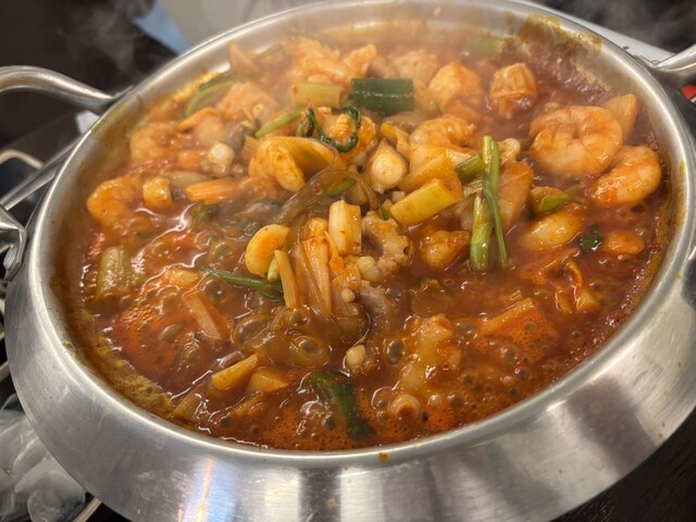 前回食べて美味しくて再度訪問。今回は2階席でした1階より少しだけゆとりがあるかな?!といった感じ。前回味付けを普通にしたのですが旨みが強くて甘く感じたので今回は辛口にこれが正解でした。辛口でも素材の旨みが強くて全然食べられる程度で辛ラーメンより全然辛くないです。やっぱり美味しい。思い出したらまた行きたくなるくらいです。