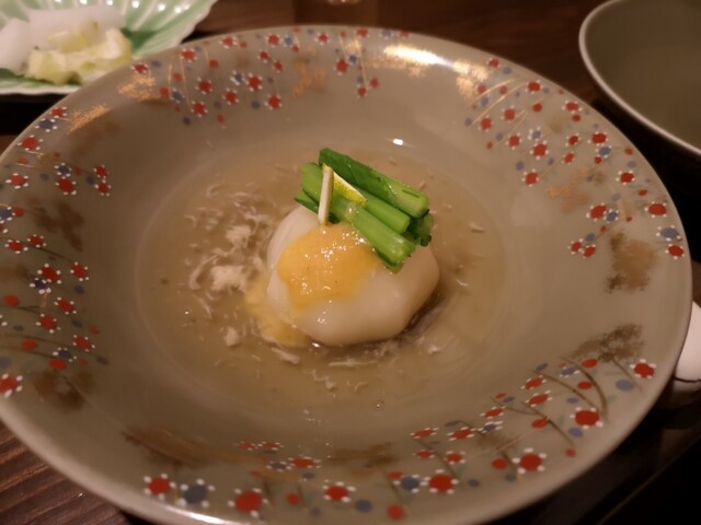 さてお食事ですが始めに小国の地酒の試飲ができます4種類 一本〆、秋水、れいざん、花雪 フルーティーで甘口の花雪をチョイス 日本酒度-20度