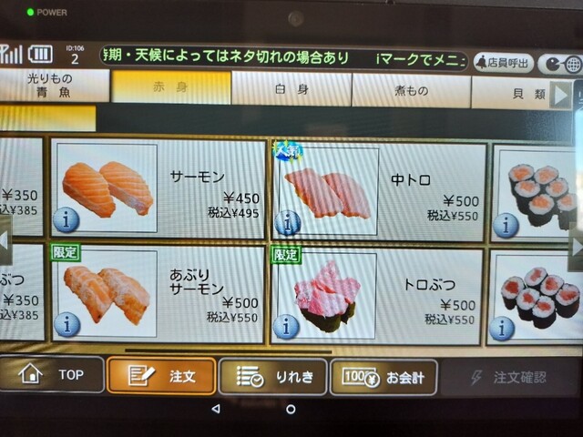 タッチパネルで注文