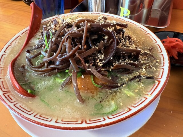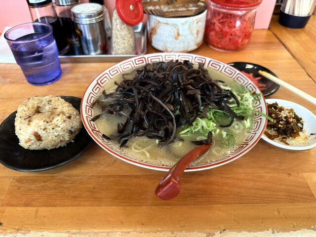 今日は替玉をせず、ランチセット(ラーメンとご飯(中)+キクラゲをトッピング。