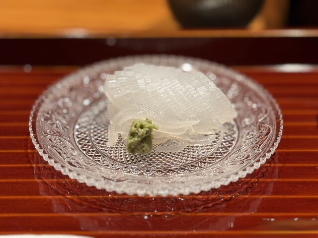 繊細な包丁がイカの旨みと甘み、心地よい食感を生み出しています。