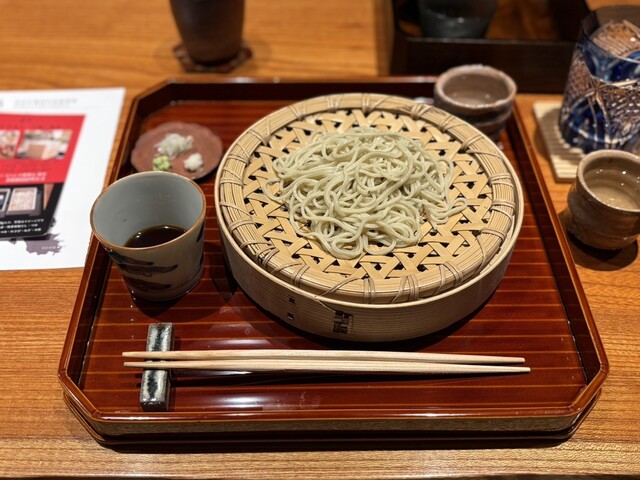 手打ちの二八蕎麦は辛味大根、山葵、ネギを添えて。