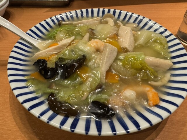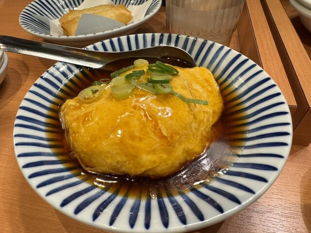 天津飯はこれまた京都名物というか、京都の天津飯は餡がお出しのようなさっぱりとした味がするという情報をチラッと耳にして、実食したくこちらで試しました。確かに!和風出汁のようなお味!とても美味しかったです。