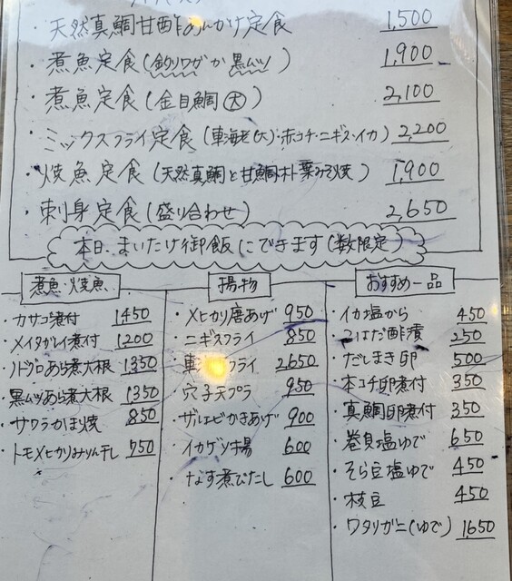 私は真鯛の甘酢あんかけ定食で妻はミックスフライ定食を注文。