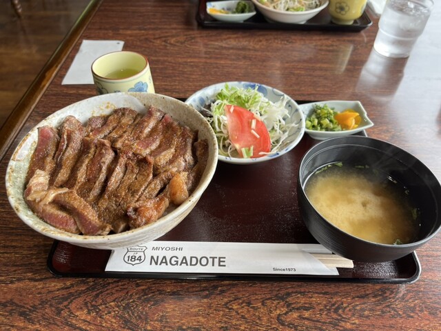 孫の登校日の後にステーキ丼を頂きにながどてさんへ。