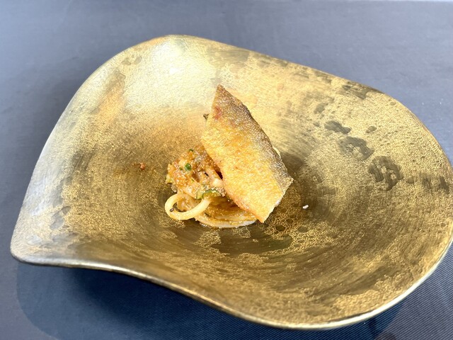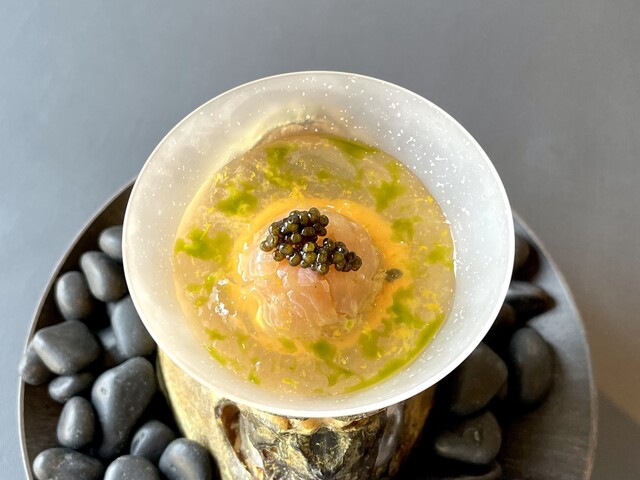 [杉寿司] シマアジ 鰹の魚醤 1週間漬 米のサラダ N25キャビア 肝 ローゼル