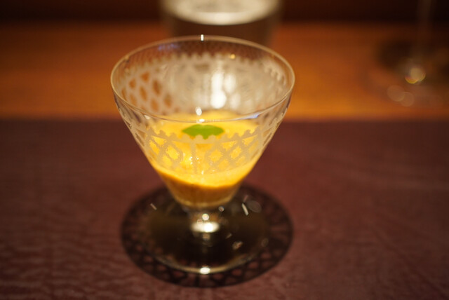 口に入れた瞬間トマトの優しい酸味と毛蟹と雲丹が合わさり綺麗にまとまっていてバランスが良い。