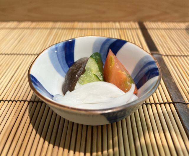 あん肝奈良漬けは、あん肝の濃厚な旨味が奈良漬けとバランスが良く旨味が溢れておりました。