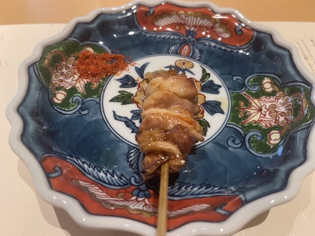 焼鳥で、一番好きなのがえんがわなのですが、えんがわがあったのでお願いしました。えんがわはあまりなかったようで、下の方がえんがわ、上の方が砂ズリという串できました。大将に、ぜひ食べてほしい!と言われた胸線初めてたべました!胸腺は、リンパ線のことなのだそう。柔らかくて、クリーミーなかんじ。食べ応えありです!