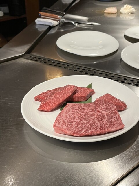 メニューには赤身となっているが適度にサシが入った柔らかな和牛で、口に入れると甘くてコクのある和牛香が抜けて行く。