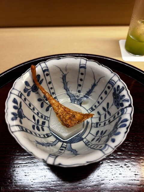 その後続く、揚げた松茸。衣と松茸が国の中でとろけて、焼き松茸やお椀とはまた違った、香りを楽しめます。