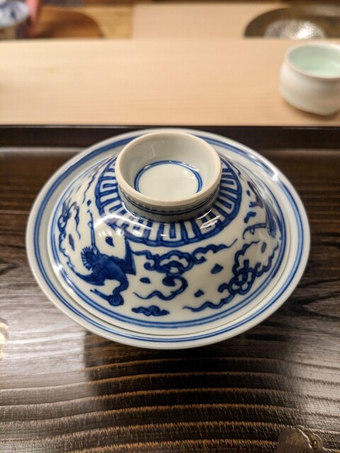 椀に鎮座する玉子豆腐の口溶けがまたとてもきめ細かで舌で押し潰すようにして戴き出汁を含めば口内で茶碗蒸しが完成するという一つの椀で2度の味わいを楽しめる椀として纏まっていました。