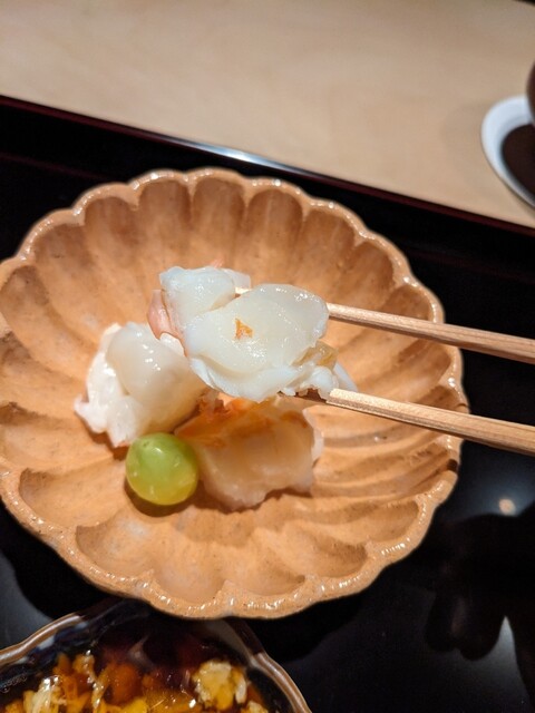 空間や客層にも品格を感じる中、使われる器も素晴らしく、その器に盛り込まれる大将の真心こもったハリのあるお料理は見た目からも美を感じながら戴いてます。