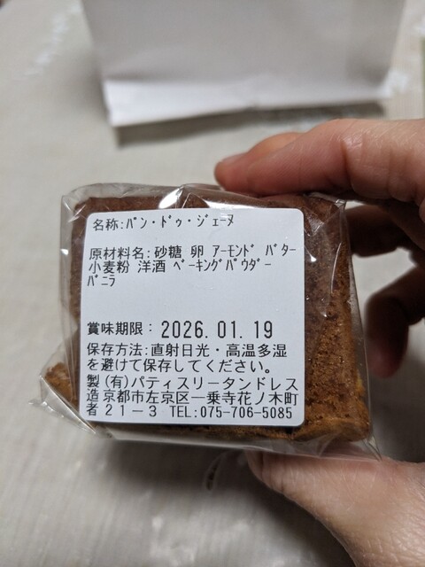 テイクアウトとして素朴なパンドジェンヌを自宅で戴きました。