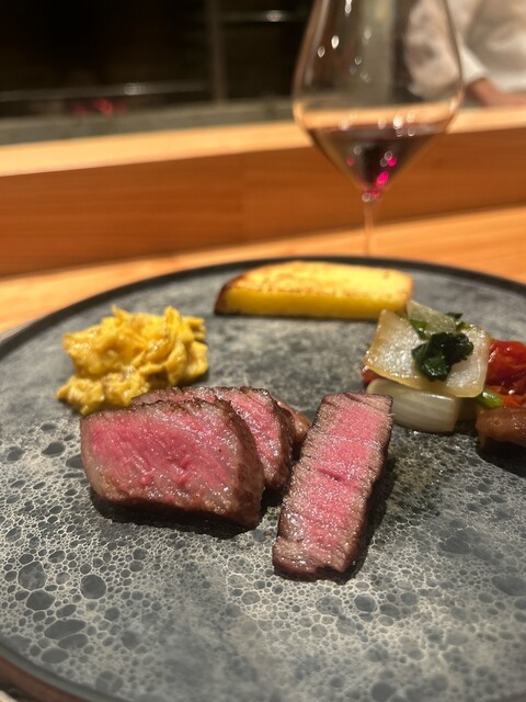 続いて登場したのは割下で味付けされたヒレとサーロインの薪焼き