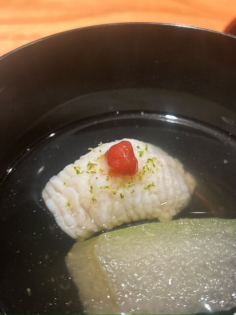 此方はご飯にも勿論合うのですが香の物と一つ目のおばんざいでご飯を2杯食べてしまった私は赤ワイン、ブリオッシュと共に戴きました