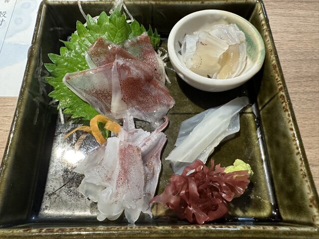 残ったエンペラや下足部分は220円追加して刺身にしてもらい最後まで満喫しました。天プラや塩焼きにも出来ます。