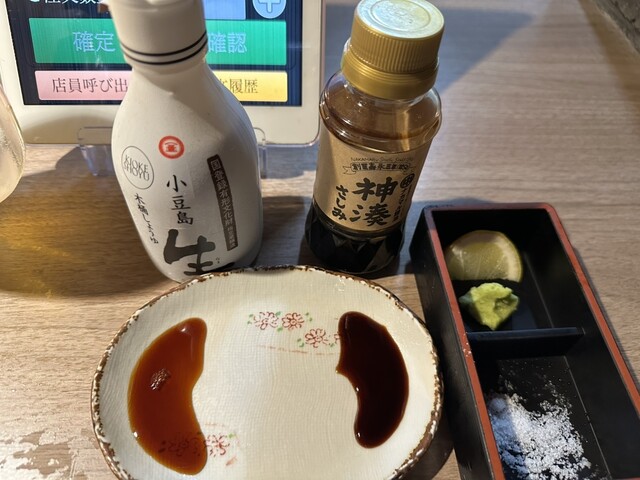 コリコリで想像以上に甘い〜。塩、ワサビ、レモン、醤油、柚子ポンとお好みでいけますが、塩で頂くのが一番美味しかった。