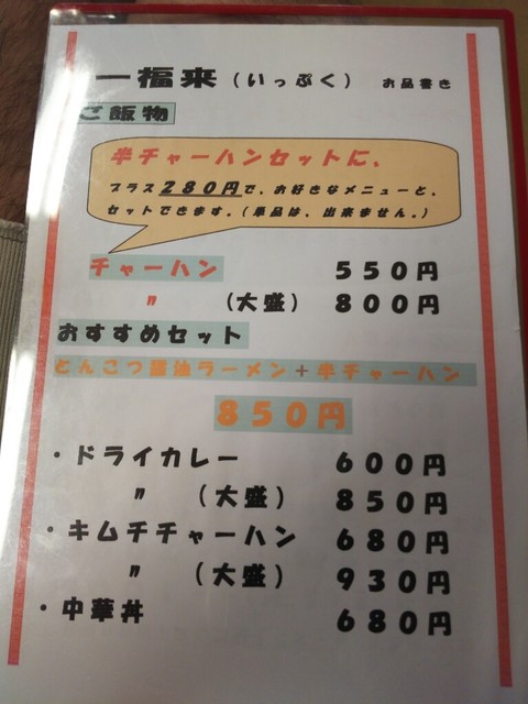 とんこつ醤油ラーメン➕半チャーハンセット➕替玉で850円 2017.9.13昼