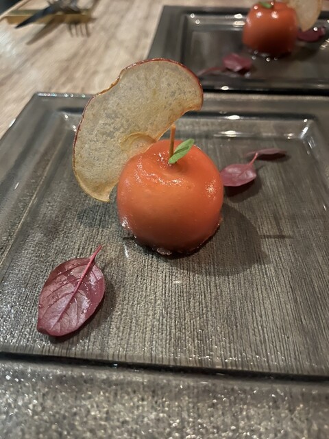 たぶん7-8回目ぐらいの訪問なのですが、本日初めてシェフにご挨拶することができました。誠実な感じの方で、お料理の盛り付けのスタイリッシュな感じとのギャップがますます好感度高いと思われました。