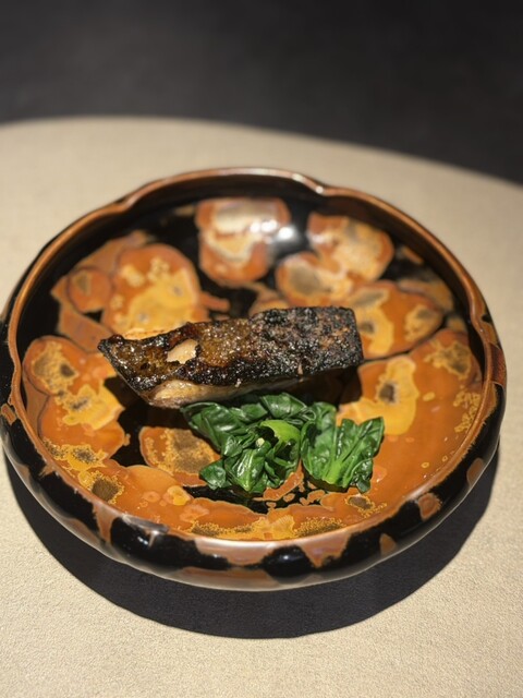 ・赤ナマコ 茶ぶり仕立て 春菊ソース