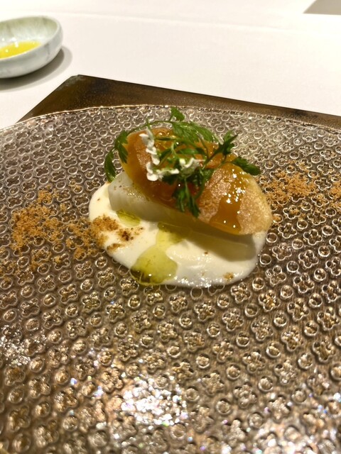 からすみの塩気と蕪ソースの優しい甘みのバランスが秀逸で、完成度の高さを感じます( ˘͈ ᵕ ˘͈ )