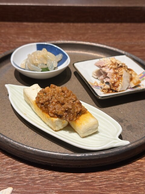蒸し鶏(自家製ラー油)/エリンギ(青山椒×オイスター)/干し大根と中華風お揚げ