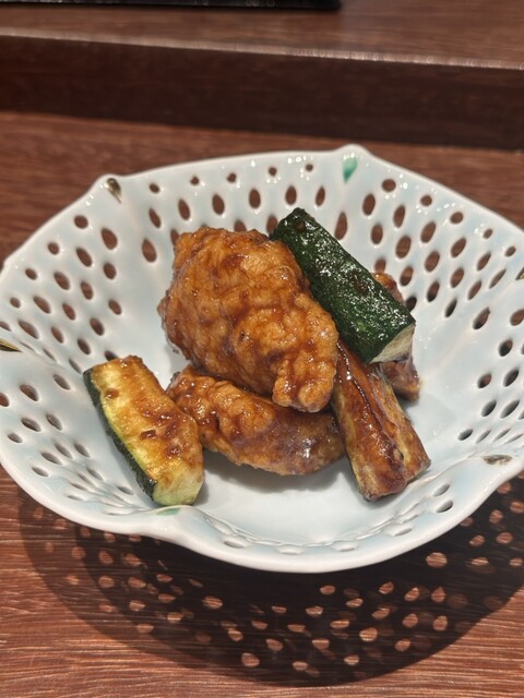 酢鶏と柿 柿が火が入ったことでジューシーなってて美味しい〜