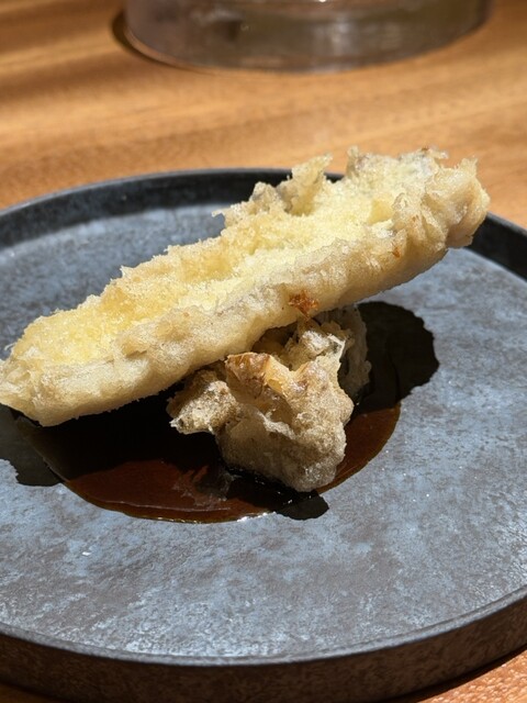 ・太刀魚と舞茸のフリット(赤ワインと八角のソース)