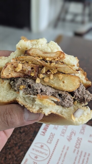 バンズも自家製なのかな?フカフカとかそんな上品なパンじゃなく、中までみっちり詰まった家庭的なバンズでしっかり旨い!