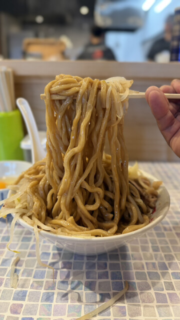 以前のゴワゴワゴリッゴリの極太麺が大好きだったのに二郎系でよく見るやや太の角麺よりチョイ太麺になってた