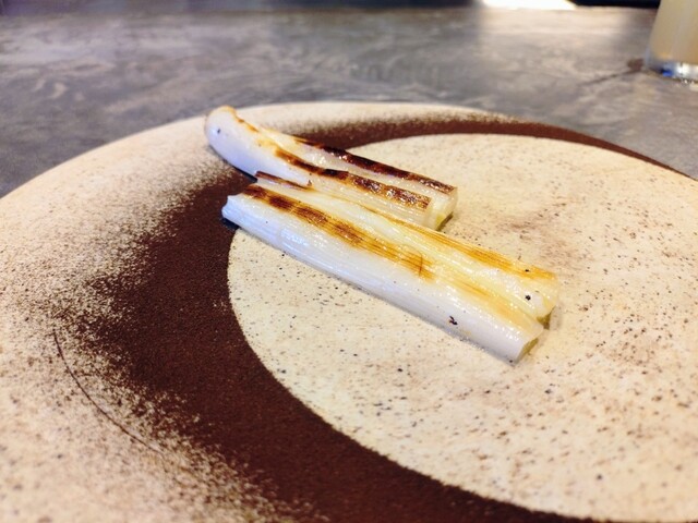 サクサクの生地の上に、白味噌とナスのペースト、そして幸手の鴨の砂肝を乗せた一品でした。