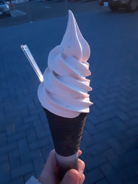 メロンソフトクリームをと思ったらコーヒーゼリーソフトクリームがあったのでそれに。