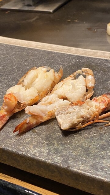 車海老は丁寧に焼き上げ、身をカットする技に釘付け。