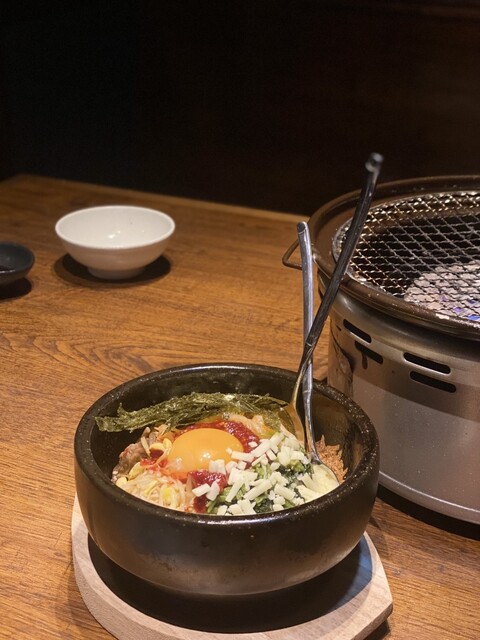 でも、両方食べたくて…食べた!チーズビビンバは、おこげまで好き❤️冷麺は私好みでした。リンゴとかチェリー乗ってる冷麺は少し好みではないけど、ここの冷麺は麺も出汁も好き〜