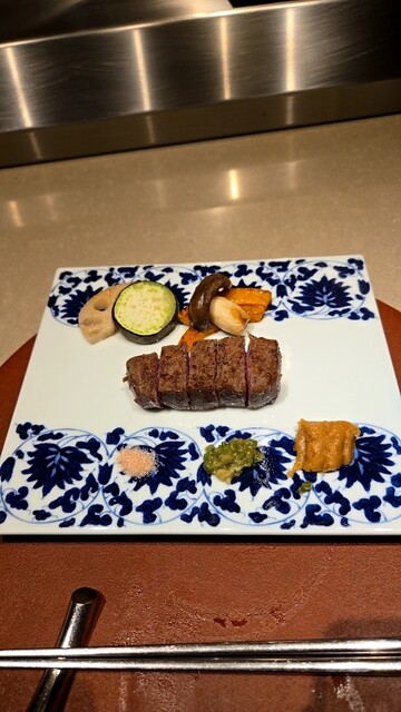 鉄板焼はカウンター7席位しかなくゆったりな