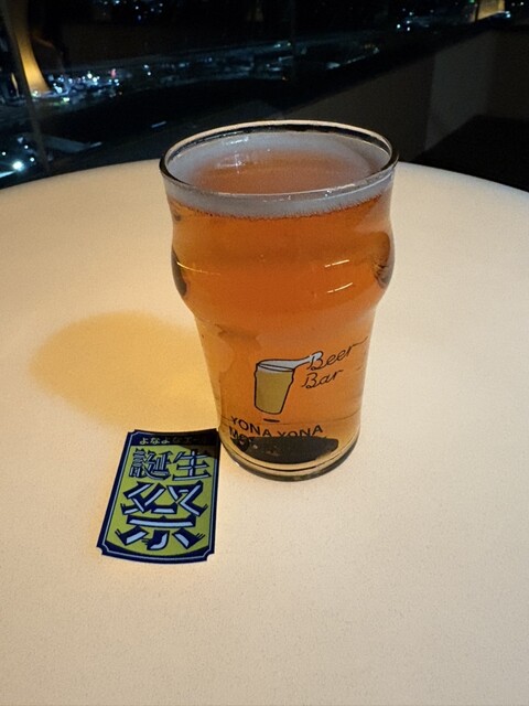 夜のテラス席で…