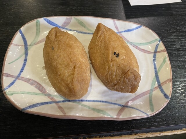 箸休めにお稲荷さんを一口。んっ?あげもご飯も酸っぱさが無いです。普通のお稲荷さんを食べたい方には肩透かしかも知れませんが、自分には一つの閃きがよぎりました。うどんを全て頂いた後にお稲荷さんを投入したらきつねカレーおじやが出来るのでは?と。